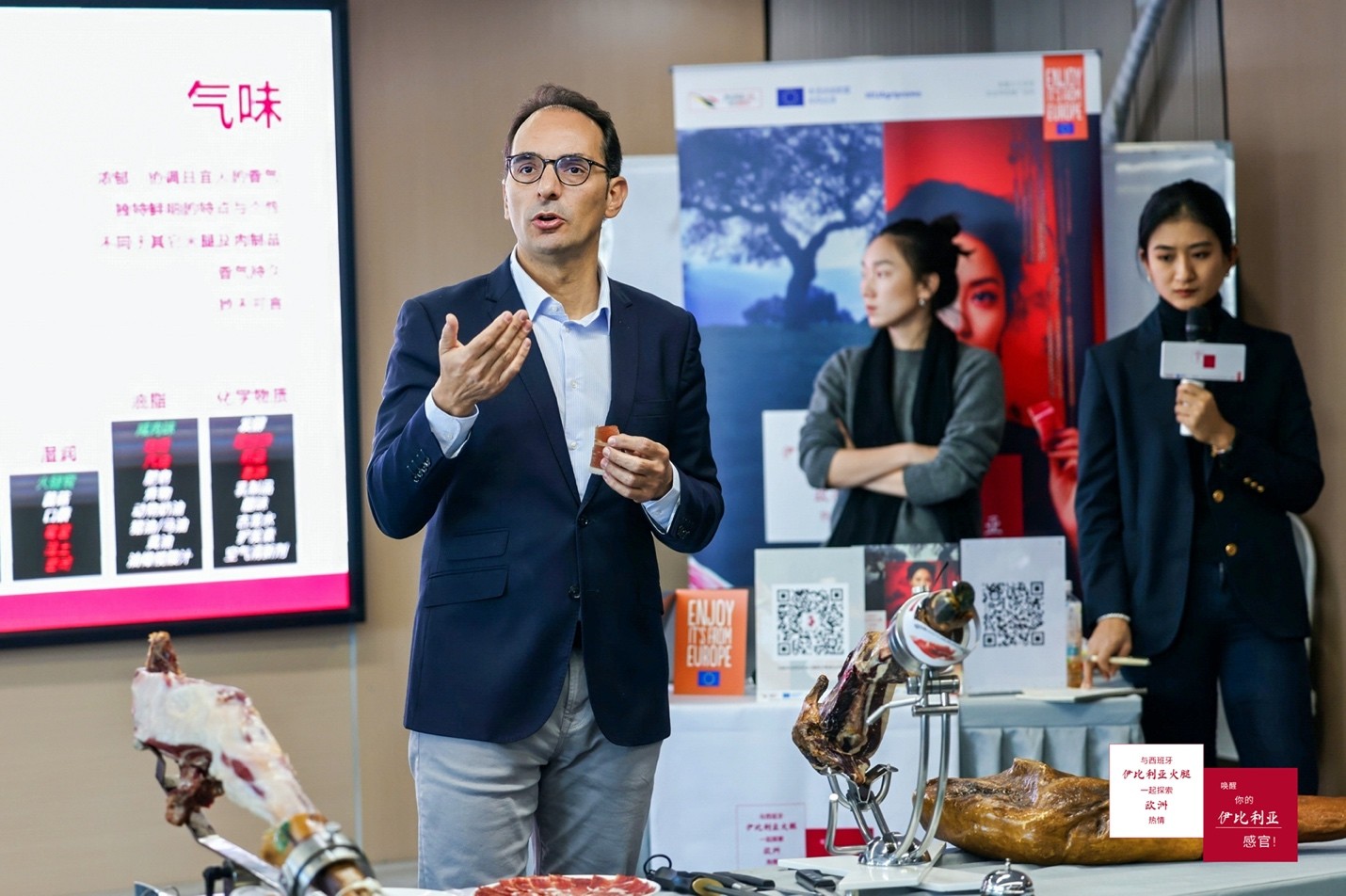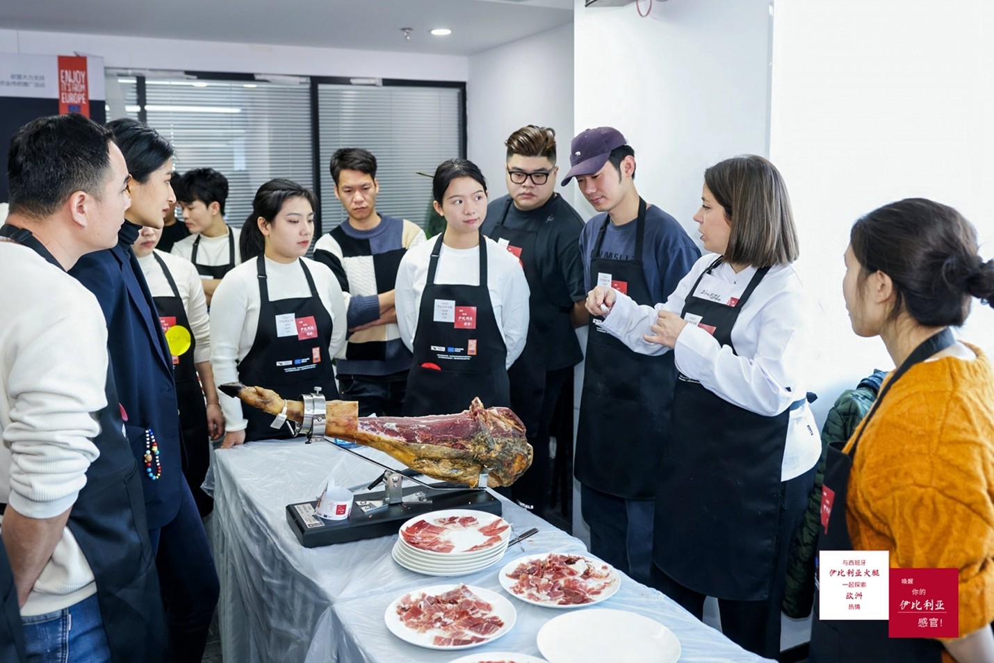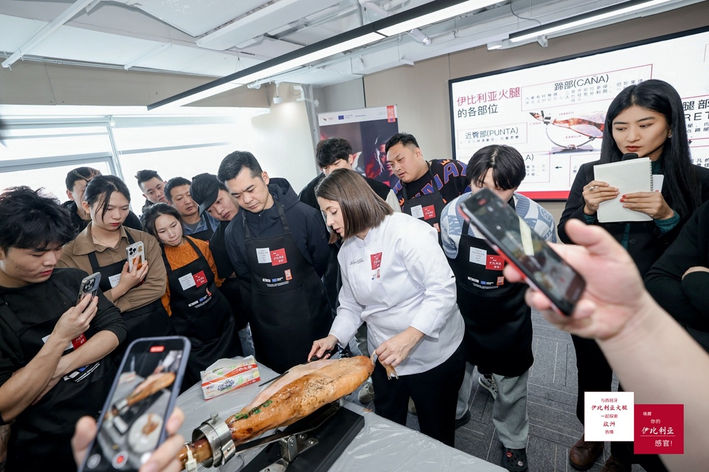 北京/马德里。春节前夕,在欧盟和农业、渔业和食品部的鼎力支持下,“唤醒你的伊比利亚感官·伊比利亚火腿中国推广项目”在上海隆重开幕。随着该项目的启动,伊比利亚猪肉产业联合组织(ASICI)在上海开展了一系列丰富多彩的线下活动,“唤醒你的伊比利亚感官·火腿雕刻大师班”便是其中之一。