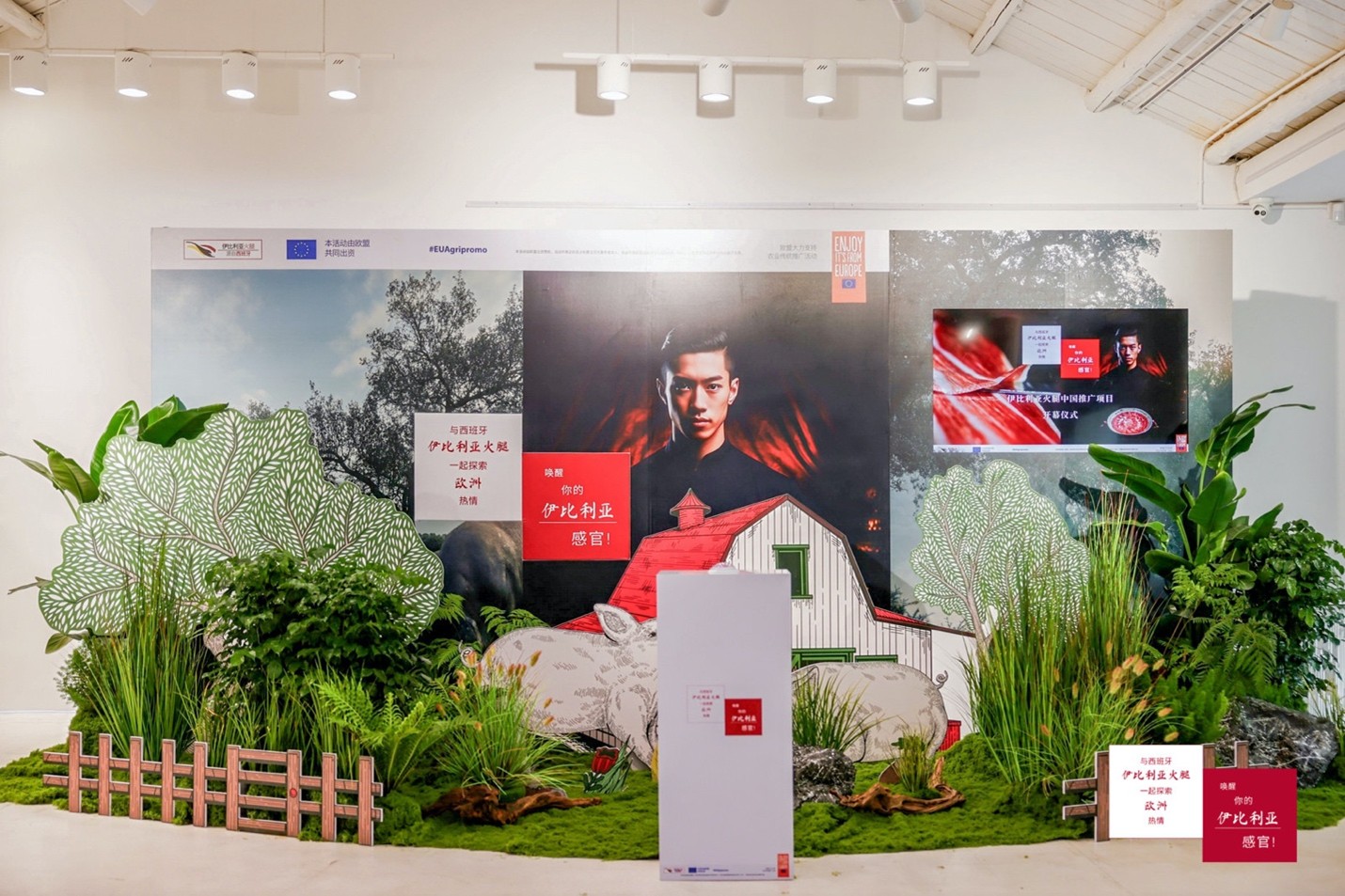 “唤醒你的伊比利亚感官·伊比利亚火腿中国推广项目”开幕仪式以极具创新的形式呈现,通过打造五大主题区域,令到场来宾沉浸在伊比利亚火腿的感官世界之中。来宾可在背景介绍区了解伊比利亚火腿跨越千年的传奇故事;在感官区调动个人的视觉、触觉、嗅觉与味觉,与伊比利亚火腿进行感官互动;在体验区通过专业火腿切割师的指导,切出完美的火腿薄片,并亲手打造创意摆盘;在品尝区尽情试吃这一欧洲顶级美食,最终唤醒伊比利亚感官。不仅如此,被设计成德埃萨(Dehesa)的拍照打卡区则使人仿佛置身在伊比利亚半岛的纯天然牧场,切身感受伊比利亚猪的成长过程。