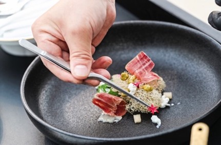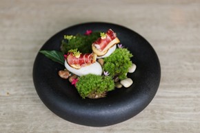 正因如此,伊比利亚火腿也在李冬等知名大厨的菜单占有特殊地位。他采用伊比利亚火腿创作了一道别出心裁的菜谱——“酥炸八宝酿鱿鱼”,即用糯米、牛肝菌、虾干和伊比利亚火腿等做馅的炸小鱿鱼,搭配黑醋珠,将地中海美食元素与中餐传统食材的口感和风味完美融合。