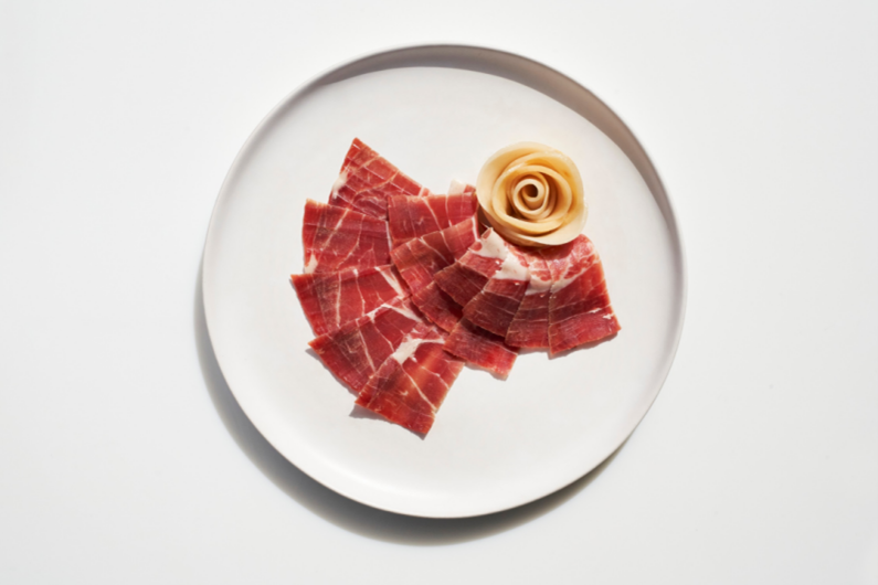 最纯正的伊比利亚火腿可以切成薄片单独食用,这样能够充分体验到它的丝滑口感和鲜美味道。