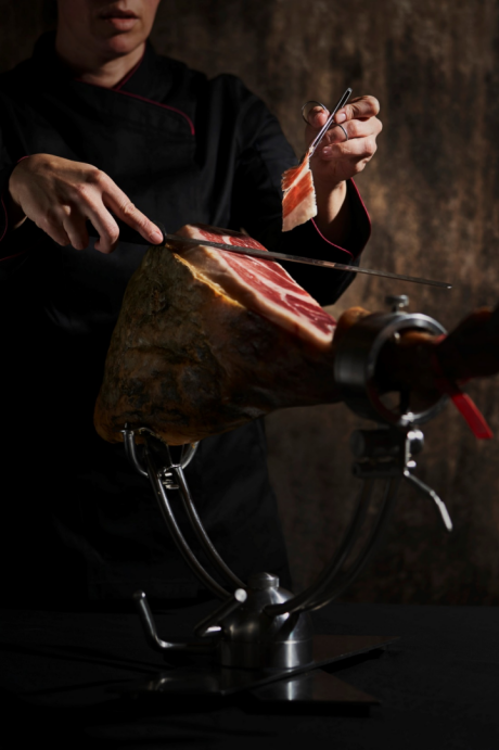 除了在节日里品尝伊比利亚火腿,想沉浸式领略伊比利亚火腿的生活方式,就一定要亲自体验火腿的切割艺术。在西班牙和欧洲,伊比利亚火腿切割师是一项颇具艺术气质的职业。只有经过火腿切割师的精心切割,伊比利亚火腿才能薄如蝉翼,入口即化,令果仁和烤面包的香气瞬间充斥味蕾。