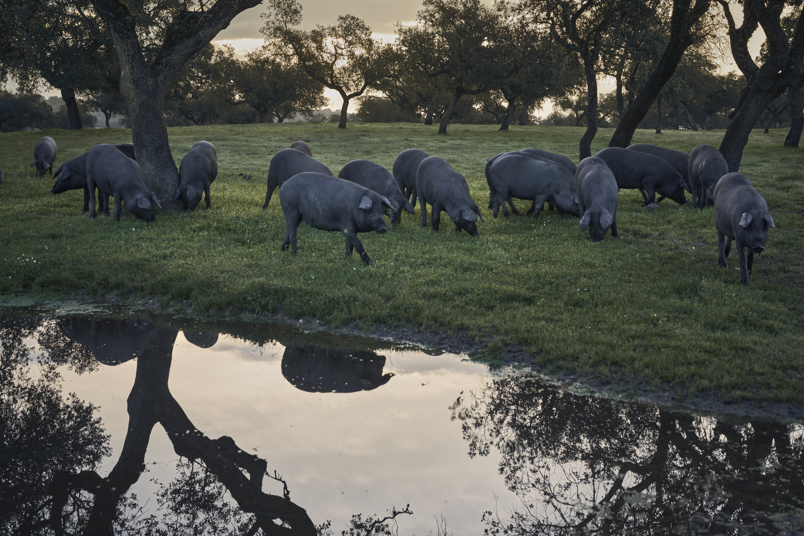 伊比利亚火腿之所以独特,不仅因为它来自于在伊比利亚半岛特有生态系统——德埃萨(DEHESA)中自由放养、以橡果为食的黑猪,更因为其原材料——伊比利亚猪这一品种本身也是全世界仅有的。